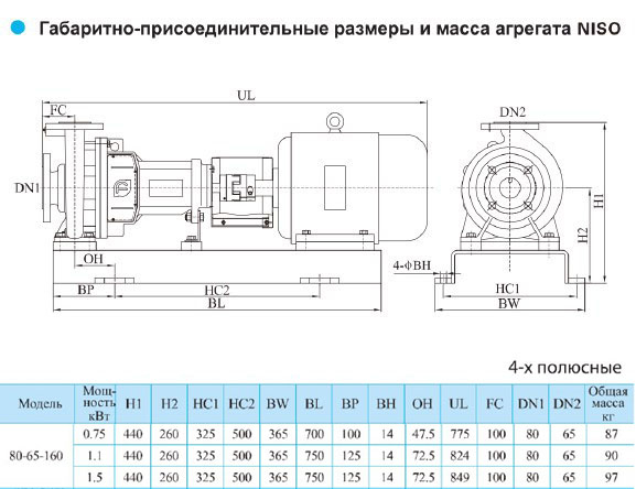 Насос CNP серии NISO 80-65-160-0.75 (Чугун, нерж.сталь)