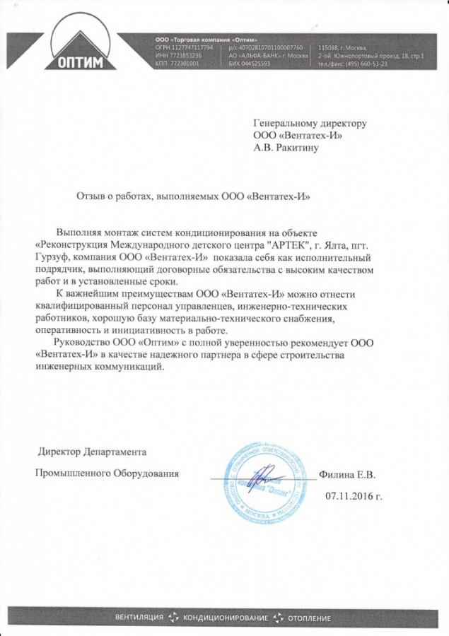 Отзыв от Торговой компании «Оптим» -