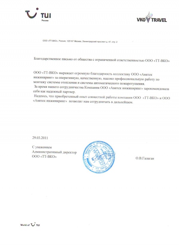 Благодарственное письмо от «ТТ ВКО» -